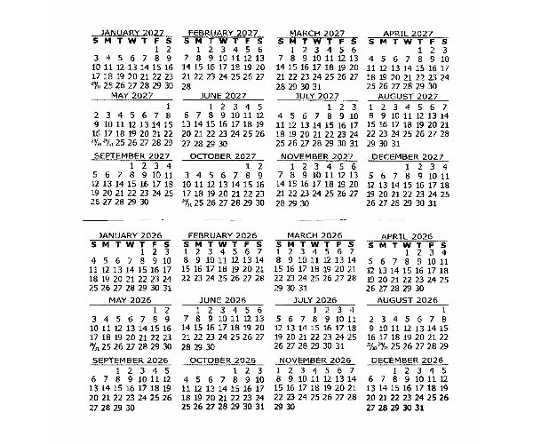 Large Print Register Insert Measures 3" x 6" and has Current 3 Full Year Calendar on the Back 3 Pages.