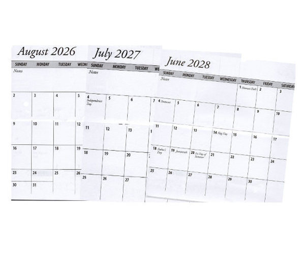 3 Full Years Calendar Insert Measures 6 1/2" x 3 1/2". Calendar Starts with January and Weeks Begin on Sundays.
