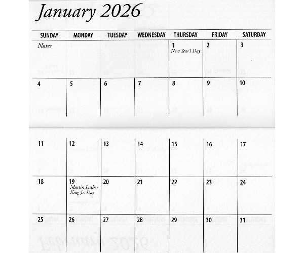 Cover Measures 6 7/8" x 3 3/4" when Closed. Custom Divider Flap to Hold Your Calendar Open to the Current Month.
