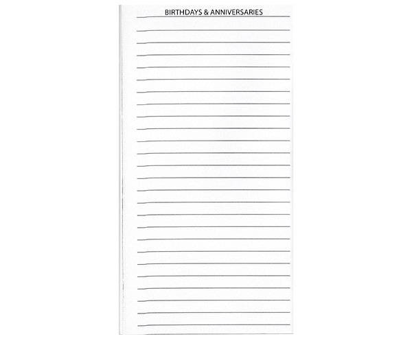 4 Pages Dedicated to Important Medical / Personal Information, Important Numbers / Emails, Passwords, and Birthdays / Anniversaries.